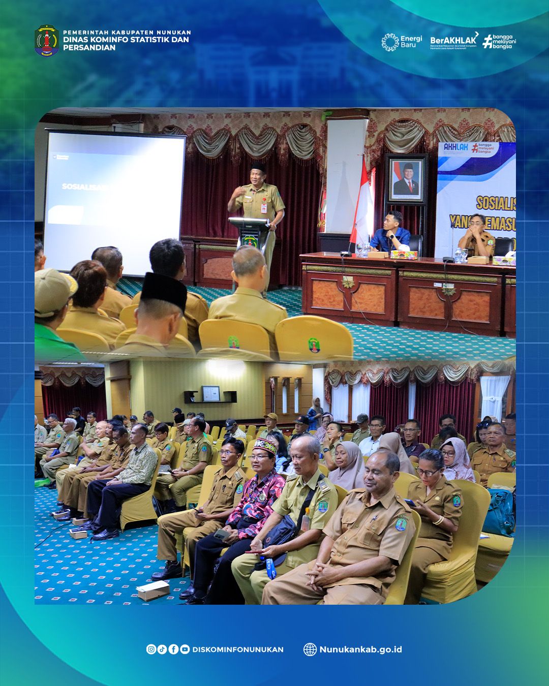 Kegiatan sosialisasi berlangsung di Lantai 4 Kantor Bupati Nunukan, Selasa (27/1/2026), dan secara resmi dibuka oleh Asisten Administrasi Umum Sekretariat Daerah Kabupaten Nunukan, Sirajuddin, S.Sos., yang mewakili Bupati Nunukan. Sosialisasi ini diikuti oleh para ASN Kabupaten Nunukan yang akan memasuki masa purna tugas.