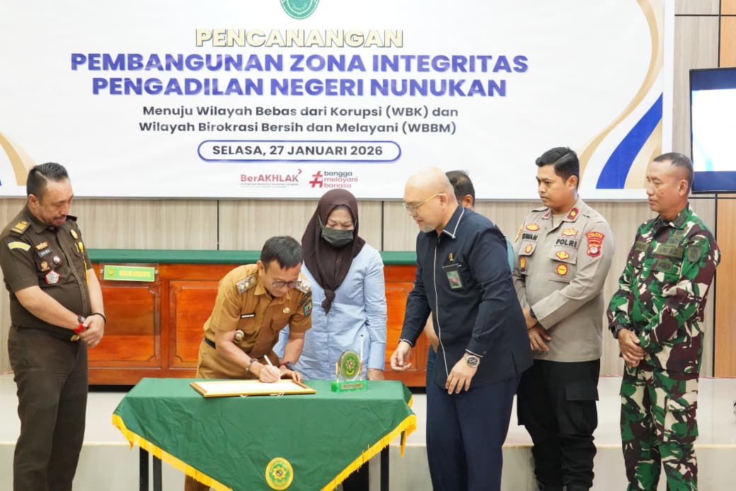 Nunukan, SIMP4TIK – Pengadilan Negeri Nunukan menggelar Pencanangan Zona Integritas Menuju Wilayah Bebas Korupsi (WBK) dan Wilayah Birokrasi Bersih dan Melayani (WBBM) yang bertempat di Kantor Pengadilan Negeri Nunukan, Selasa, 27/01/2026.