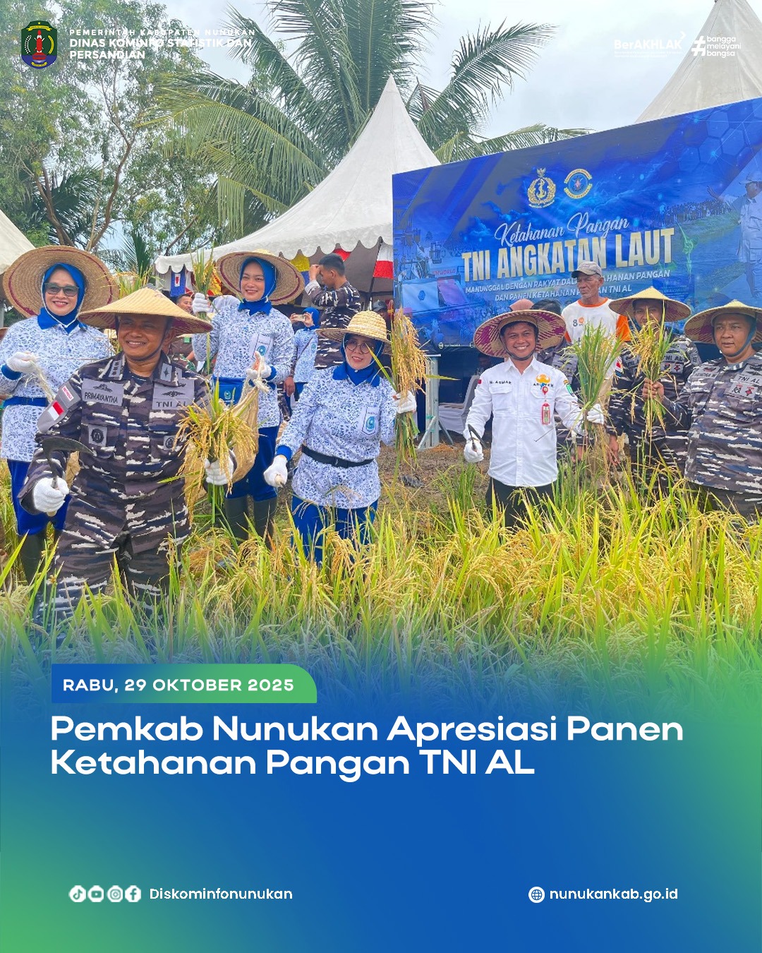 Nunukan, SIMP4TIK - Pemerintah Kabupaten Nunukan memberikan penghargaan kepada TNI Angkatan Laut atas terlaksananya panen ketahanan pangan pada tahun 2025.