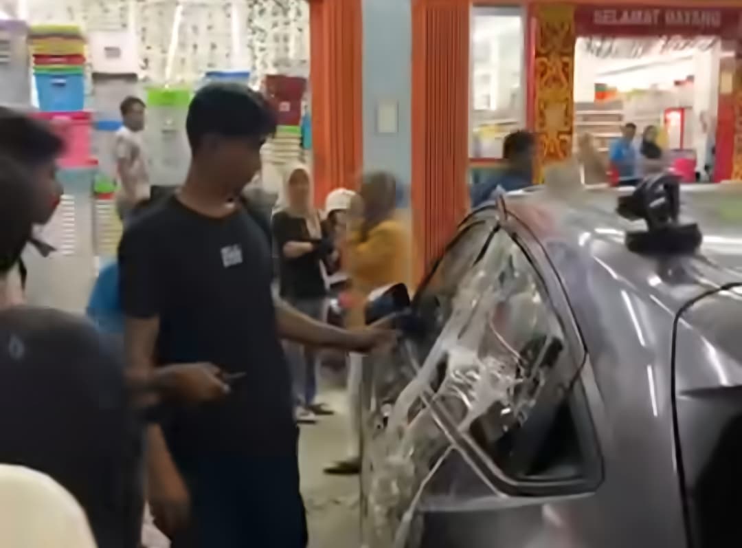 Mega pun tampak lega setelah pintu mobilnya berhasil dibuka dan ia bisa kembali pulang bersama anaknya dengan aman.